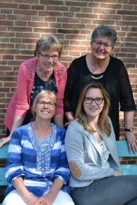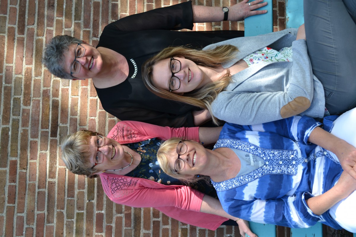 Conny Prins en Petra de Visser (achterste rij), Nicolette Kölker en Meggie Drapers (voorste rij).
